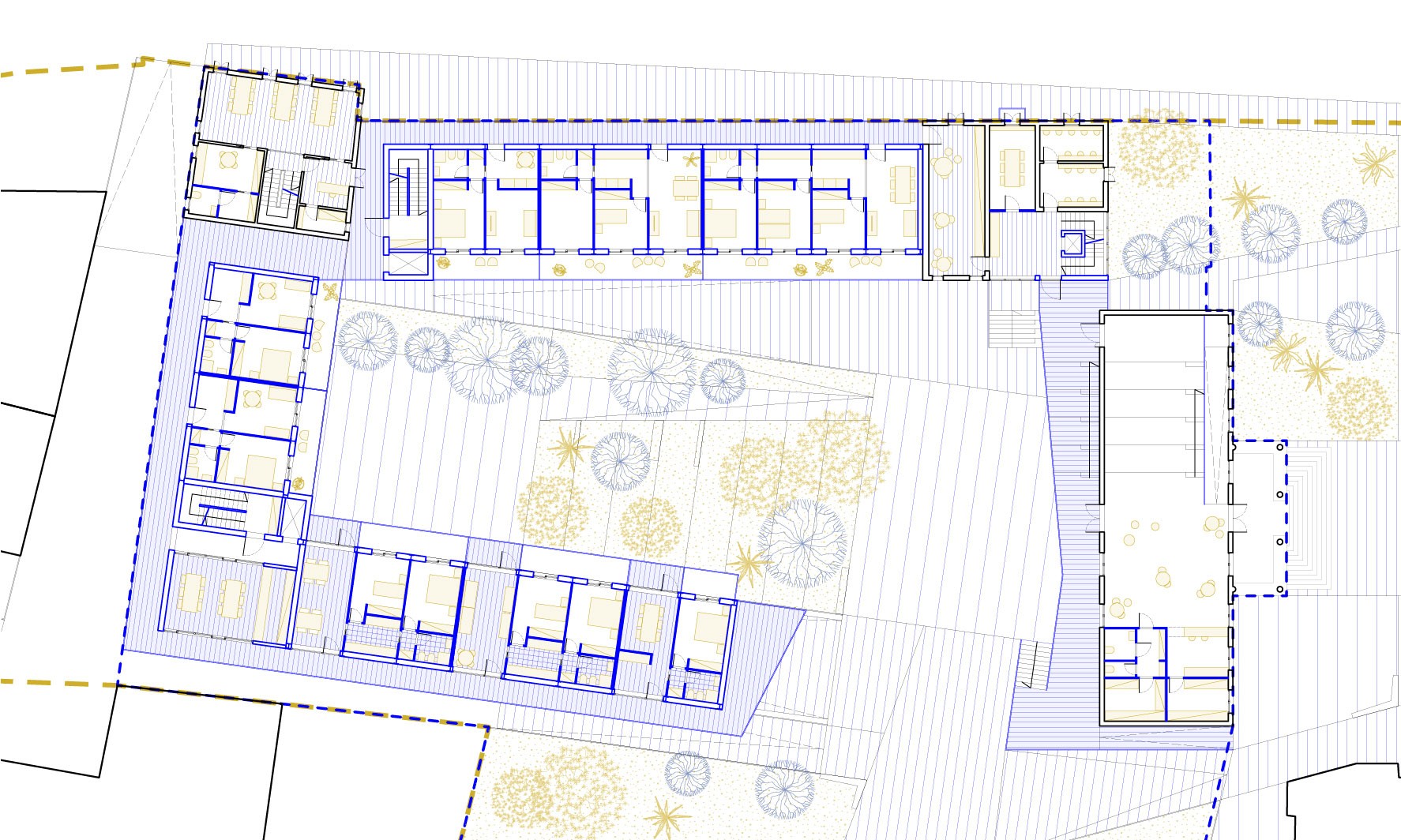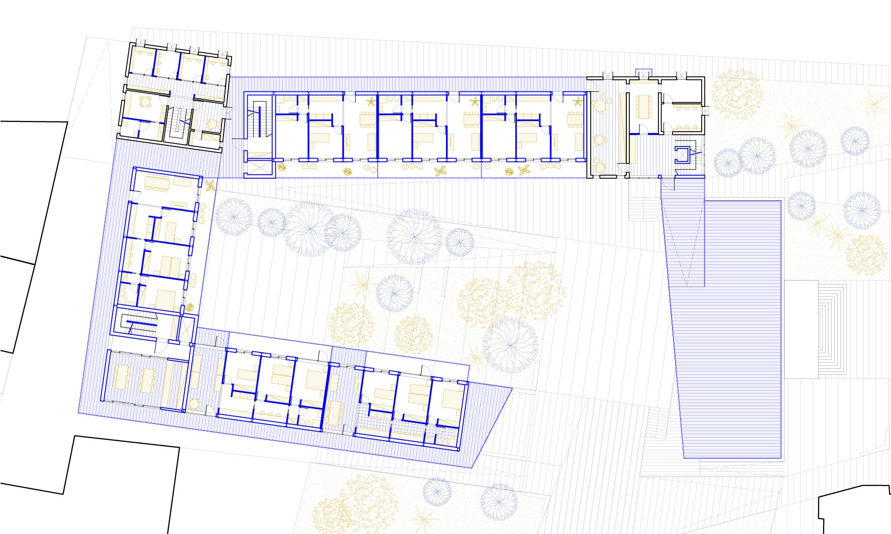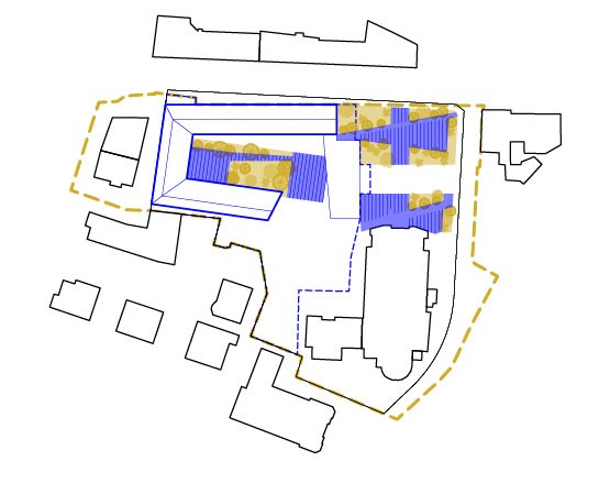 The redevelopment project involves an in-depth analysis and reinterpretation of the existing urban fabric. It was therefore decided to selectively demolish the superfluous structures and buildings in a state of serious disrepair, but to rebuild on the same site and with the same surface areas and heights. This strategy significantly reduces the consumption of natural resources and the environmental impact associated with the production of building materials and, consequently, the related construction costs. In the project, public and private functions merge synergistically, creating a dynamic and engaging space. The public space is designed to integrate and interact with the existing texture, occupying the entire area of intervention, so as to return that portion of the city that had been taken away to the community. The elements that make up the project are held together by a ground that is modelled according to the existing levels and opens up to the city with an access ramp.