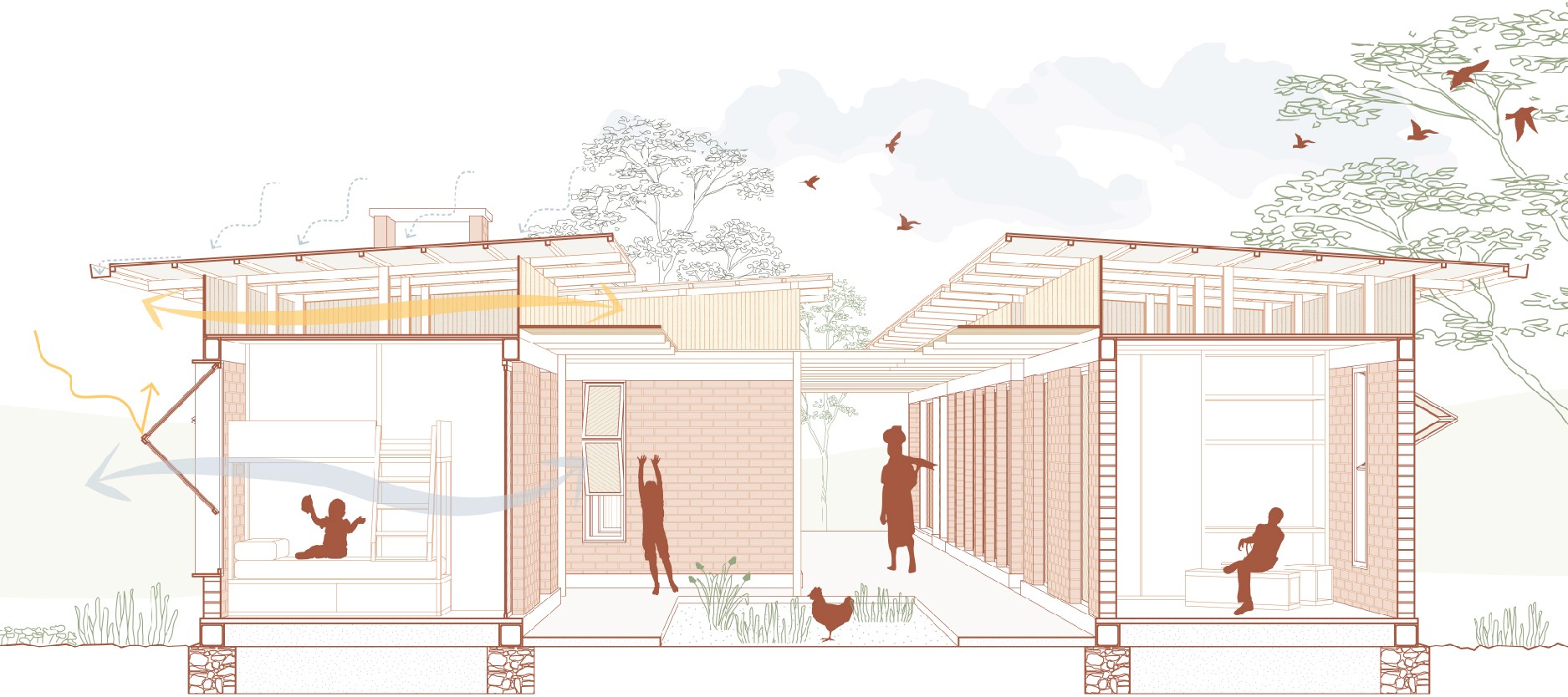 The Jorejick House is meant to be an attempt to design a house that could be low-cost, low-maintenance and, combined with simple and modular technology, could help promote the participation of the community during the construction and allow the family to build step by step the house, according to their needs and means.