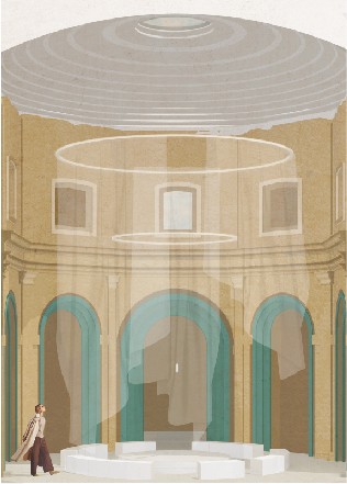 The same concept comes back inside the church thanks to a flexible and light system of curtains and seats that allow the use in different occasions. Proposing the loop again on a wider scale will allow the involvement of all the places of interest around the lake of Bolsena. In this new imagined path, the pilgrim center will play a role of interest on a wider territory scale.