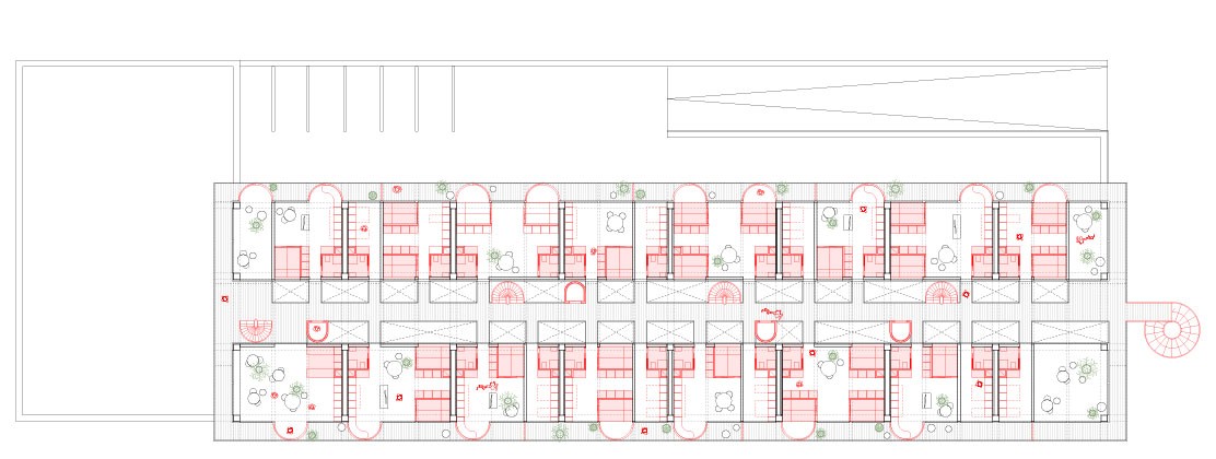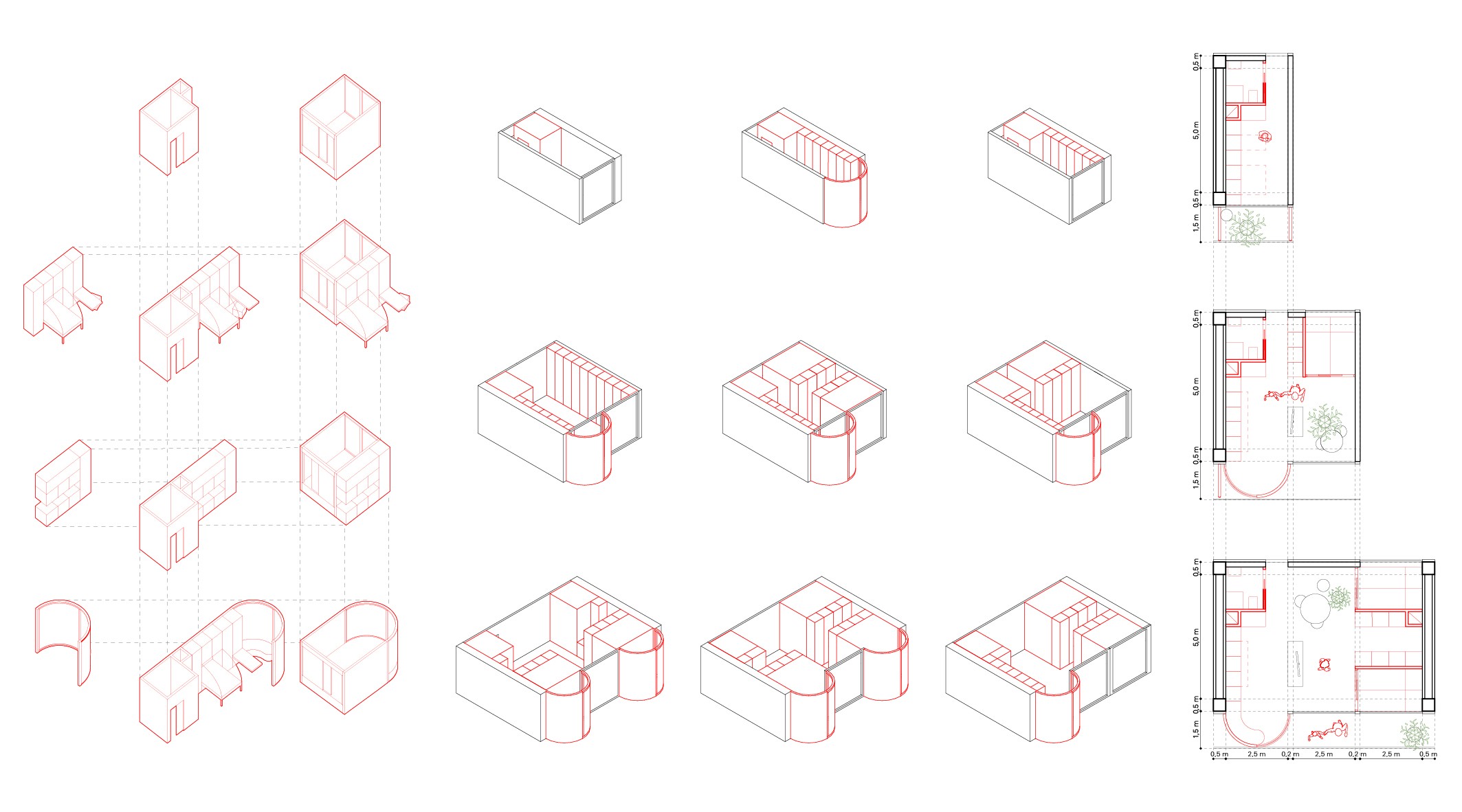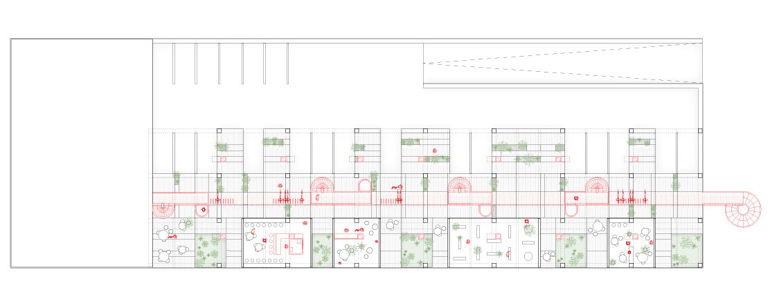 The project develops a modular system for affordable housing by repurposing parking spaces in the city of Los Angeles. The fundamental module is designed around the minimum size of a parking space (2,5x5 meters), enabling the construction of buildings that seamlessly fit within the parking space. An incremental aggregation system is proposed, facilitating the utilization of existing conditions and enabling a flexible and coherent approach to construction. Envisaging the car park’s facilities as a supports, the concept involves transforming its interior through modular, functional infills. These infills can be easily dismantled or reconfigured as needed.